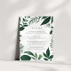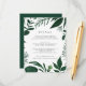 Conçue pour coordonner avec notre collection de mariages de la forêt sauvage, cette élégante carte d'information botanique d'hiver comporte une bordure de feuillage vert chasseur encerclant vos principaux détails mariages, tels que les chambres d'hôtel, les informations de réception de bienvenue, le site Web et plus encore. Ajoutez votre texte personnalisé à l'aide des champs fournis, puis ajustez les polices, les tailles et l'espacement si nécessaire.