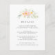 Conçu pour s'harmoniser avec notre collection Airy mariage, cette carte d'information florale chic comprend un simple jet de fleurs pastel peach et feuillage vert menthe, surplombant vos principaux détails mariages, comme les chambres d'hôtel, les informations de bienvenue de la réception, le site Web et plus encore. Ajoutez votre texte personnalisé à l'aide des champs fournis et utilisez la fonction Personnaliser pour ajuster les polices, les tailles et l'espacement.