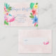 Aquarelle rose pâle lavée arrière - plan avec des bouquets floraux de style hawaïen tropical et un oiseau flamand rose pour un été moderne plage luau, aloha, océan, bord de mer, baby shower à thème de destination carte d'insertion de la tombola personnalisée de la couche.