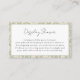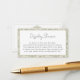 Guidez vos invités avec facilité en utilisant cette carte d'insertion de douche d'affichage de poire parfaite de style campagne française vert sauge. Avec des accents de damas élégants et des détails de poire, cette carte est un moyen charmant de partager les instructions de douche d'affichage avec vos invités. Un détail attentionné qui garde votre douche de mariage organisée tout en améliorant le thème cohérent. Associez-la avec des invitations, de la vaisselle et des faveurs assortis pour une célébration coordonnée.