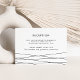 Élégantes et modernes, ces cartes d'insertion de réception de mariage chic présentent une bordure inférieure de lignes géométriques entrecroisées en noir sur une carte blanche croquante. Ajoutez vos détails de réception, y compris l'heure, le lieu et l'adresse. Conçue pour correspondre à notre suite de mariage Lineation en noir et blanc.