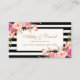Aquarelle mariage Floral rose Blush Gold et Black & White Stripes Registre Insérer carte