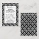 Cette élégante carte de boîtier en noir et blanc de la réception comporte une bordure en damas LOOK grise argentée FAUX qui correspond à l'invitation du 25e anniversaire du mariage présentée ci-dessous. Si vous modifiez les polices ou les tailles de police, votre texte risque de ne plus correspondre correctement. Zazzle ne modifiera rien pour les fautes de frappe, l'alignement ou autre chose, et je ne verrai pas votre carte. Tout va s'imprimer tel qu'il apparaît sur votre écran. Si vous avez besoin d'aide avec cette carte, veuillez me contacter AVANT de la commander. Cette carte est conçue pour s'adapter à la carte de 2,5 po x 3,5 po. Si vous passez à une autre taille, la conception ne s'adaptera plus correctement, donc si vous voulez une autre taille, s'il vous plaît contactez-moi afin que je puisse la re-concevoir pour vous. Si vous avez besoin d'autres articles correspondants dans cette conception, veuillez envoyer votre demande par courriel à niteowlstudio@gmail.com.