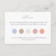 Cette carte d'insertion de code vestimentaire pastel moderne comporte 5 options de couleur modifiables contre un arrière - plan blanc et l'option d'inclure une adresse de site mariage. Personnalisez-le pour le rendre unique . Utilisez le propre outil EDIT de Zazzle pour modifier la couleur de chaque point selon vos préférences.