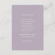 Cette carte de détails mariage moderne, simple, minimaliste, présente un lettrage moderne en blanc avec arrière - plan lilas/violet poussiéreux. Vous pouvez trouver des produits correspondants dans mon magasin.