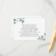 Une carte à insérer pour demande d'argent pour une douche de mariée. Avec des branches d'eucalyptus en dollars argentés aquarelle et un poème :