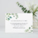Conçue pour s'harmoniser avec notre collection de mariages d'aquarelle Eucalyptus, cette carte botanique élégante présente des vaporisateurs de feuilles d'eucalyptus peints à l'aquarelle entourant vos détails d'hébergement de l'hôtel mariage.