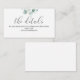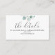 Un arrière - plan moderne et simple pour transmettre vos réponses et détails mariages. Ce design romantique et minimaliste présente des feuilles eucalyptus et une calligraphie élégante.