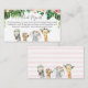 Floral Foliage Safari Baby shower Demande de livre Insérer Animaux safari de fille audacieuse et douce demande de carnet de baby showers insérer avec quatre animaux de la jungle, quelques arrangements floraux roses, rouges et jaunes et quelques feuillages.