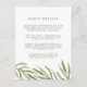 Elégante carte d'information des clients aquarelle dispose d'un trio de branches vertes et de feuilles au fond pour un look chic inspiré de la nature dans les couleurs mariages les plus chaudes de 2017. Remplacez l'exemple de texte par les détails clés de votre célébration mariage. Conçu pour coordonner avec notre collection de faire-part de mariage botaniques d'aquarelle de verdure. Vous vous demandez quelles informations inclure sur un encart faire-part de mariage ? Prenez en compte des détails comme l'hébergement à l'hôtel, les codes de groupe, le transport, l'itinéraire, les informations sur la réception de bienvenue et votre URL du site Web mariage. Vous pouvez même télécharger une carte vers l'envers à l'aide de la fonction personnaliser it. Vous avez besoin d'aide pour le libellé ou la mise en forme? J'adorerais aider ! Contactez Kristen via le lien "contacter ce designer".
