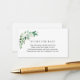Une carte d'insertion de demande de livre pour le baby shower. Fleurs blanches, verdure et poème : "UNE PETITE DEMANDE, NOUS ESPÉRONS NE PAS TROP DUR S'IL VOUS PLAÎT APPORTER UN LIVRE AU LIEU D'UNE CARTE ILS SERONT CHERISER LE LIVRE, BIEN AIMÉ OU NEUF S'IL VOUS PLAÎT SIGNER L'INTÉRIEUR AVEC UN MESSAGE DE DE VOUS!"