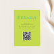 Détails Mariage Carte de boîtier avec QR Code de la collection Leilani, avec des couleurs vives et audacieuses et une typographie moderne, ne manquez pas de faire une impression durable sur vos invités! Personnalisez-le avec vos détails facilement et rapidement. Appuyez simplement sur le bouton "customiser" pour réorganiser et formater le style et le placement du texte.