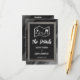 Une carte élégante rétro, noire et blanche avec un double brin de perles blanches et une carte amusante.