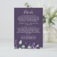 Cette carte d'enceinte à détails violets de lavande rustique est parfaite pour un mariage extérieur simple et élégant. Le design floral présente des feuilles d'eucalyptus aquarelle et de la verdure avec des sprigs de fleurs sauvages violets sur un arrière - plan prune violet.