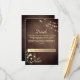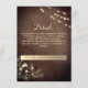 Elégante, moderne, rustique carte de détails mariage en bois avec site web, dentelle dorée dorée et lumières à cordes. Idéal pour les mariages d'automne ou d'hiver.