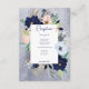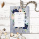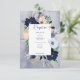 Cette carte de réception de mariage est décorée d'une couronne de fleurs bronzées, marines, rousses de pêche, bronzées et blanches sur un arrière - plan bleu marine. Il comprend également des éléments nautiques comme la corde, l'étoile de mer et une ancre. Idéal pour la destination, la plage ou le mariage au bord de l'eau. Créé par Simply Farmhouse Press, il fait partie de la Rustic Floral Beach Nautical Mariage Suite.