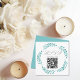De belles vignes de feuilles sarcelles s'enroulent autour de la date de réponse et du code QR du site web sur cette simple mais charmante carte de réponse de mariage sur le thème de la plage. Un look élégant pour un mariage en bord de mer, combinant un beau design botanique bleu pâle avec une typographie élégante pour un style minimaliste chic.