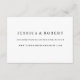 Une élégante carte d'encart en noir et blanc qui dirige les invités vers votre site web. Customisez la couleur de l'arrière-plan et ajoutez du texte au besoin. Cliquez sur "Customiser" et utilisez les nuances à droite pour changer la couleur arrière - plan. L'outil pipette vous donne encore plus de nuances, et la liaison "avancée" ouvre tout le spectre. Vous pouvez également copier et coller une valeur hexadécimale si vous en avez une. Obtenez la main avec les outils de montage do-it-yourself de zazzle, en éditant la conception avec tous vos propres détails sur votre mariage. Vous pouvez ajouter du texte et des images comme vous le souhaitez. Évitez les kits bon marché et achetez ces suites de faire-part de mariage formelles qui ont été créées par un professionnel. Plus d'options pour votre correspondance mariage et jour d'accessoires La plupart des invitations que je conçois seront très agréables pour toute saison : hiver, printemps, été, automne ou mariages d'automne. Elles sont également classées comme vintages, anciennes, élégantes, formelles, noires et blanches ou traditionnelles.