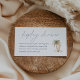 Partagez votre demande de douche avec style avec cette carte d'enceinte côtière aquarelle de Redwood & Vine Design Co. Le design comprend un palmier peint à la main, une planche de surf et un littoral sablonneux, jumelé à un script gracieux et un texte serif propre. Idéal pour les baby showers tropicaux, de surf ou de plage, ce insert peut être ajouté à des invitations pour faire savoir aux clients d'apporter des cadeaux non emballés pour une présentation facile et belle. S'harmonise parfaitement avec les autres pièces de la suite de papeterie côtière correspondante.