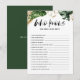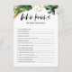 Qui sait que la mariée est la meilleure ? Ajoutez cette carte amusante et ludique à votre douche nuptiale. Il présente des feuilles tropicaux aux accents tropicaux faux feuille d'or. Personnalisez en ajoutant un nom et un événement au verso de la carte. Cette carte de jeux pour deviner la nage verte est parfaite pour les douches à thème estivales et tropicales.