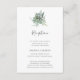 Cette carte de réception de mariage à la verdure succulente est parfaite pour votre mariage bohème aux fleurs tropicales vert sauge. Le design présente une illustration moderne à l'aquarelle, comprenant de l'eucalyptus vert clair, une fougère délicate et des variétés de succulentes classiques, donnant au design une sensation de jardin secret simple et élégant, parfaite pour tout mariage de printemps, d'été, d'automne ou d'hiver ! N'hésitez pas à nous contacter pour toute question concernant le design du produit ; à votre santé !