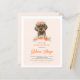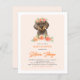 Invite guests to your event with this customizable baby shower invitation. It features watercolor illustrations of a cute dachshund, and peach flowers. Personalize by adding your details. This cute dachshund invitation is perfect for birthdays, baby showers, and other events.