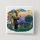 The patron saint of animals and a loved figures that crosses denominational lines, St. Francis is shown here with a black and tan Dachshund The figure of Saint Francis itself was adapted from Giotto's 14th century masterpiece and a new background was created by Jean Fitzgerald