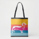 Dachshund by colorful stripes tote bag