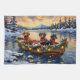 Bring spirited, low-riding charm to your holiday season with this adorable Dachshund Christmas design! This magical scene features three cute, expressive Dachshunds (Doxies) sitting attentively in a cozy wooden boat, gently floating on a serene snowy lake at sunset. The boat is beautifully adorned with glowing Christmas string lights and fragrant pine garlands, while the dogs wear festive scarves. They are surrounded by colorful wrapped presents and cheerful holly branches. Soft snowflakes gently fall, and the shimmering reflection of the lights on the water creates a truly magical winter holiday atmosphere. This design is a perfect Christmas gift for any Dachshund owner, dog lover, or admirer of festive and beloved hound dog art, capturing the serene joy of the season.