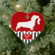 Dachshund with stocking and a special place for your pets name. Add a photo or text to the back of ornament if you like.