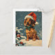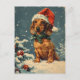 Share the holiday cheer with a charming Christmas card featuring an adorable Dachshund donning a festive Santa hat. The playful pup's joyful expression and the whimsical touch of the hat bring warmth and merriment to the card. Perfect for spreading smiles and seasonal greetings, this card captures the spirit of the holidays with its endearing canine charm. Send wishes for a tail-wagging, festive season with this heartwarming and delightful Christmas card.