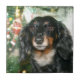 Black miniature dachshund in a vintage looking Christmas background photo holiday ceramic tile