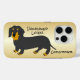 Mobile phone case dachshund dog design that you can customise with any text of your choice. Should you require any help with customising then please contact us through the link on this page. Dachshund design personalised iPhone 15 case