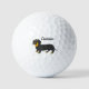 This dachshund dog design golf ball is white and dimpled, with a diameter of at least 1.680 inches (42.67 mm) and a mass no more than 1.620 ounces (45.93 grams). The dimples on the surface are crucial for aerodynamics, reducing drag and allowing the ball to travel farther. Golf balls are designed with multiple layers to optimize distance, spin, and feel. Dachshund dog design golf ball