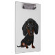 A sturdy clipboard ideal for providing a flat writing surface wherever you are. With a digital oil painting caricature of a Dachshund puppy dog.