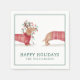 Our festive holiday napkin design features our hand drawn dachshund dog wearing a festive red cozy knitted sweater. The dachshund dog is wearing antlers with a string of Christmas lights wrapped around the dog and in the dog's month. The front of the dachshund dog is placed on one side of the napkin with the back end of the dog placed on the other end to create the impression of the dog wrapping around the napkin and to create a cute fun design. Original artwork by Moodthology.