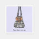 Cute dachshund dog in a black and white plaid bag with the funny text "I go where you go"