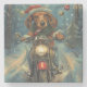 Dachshund Dog Riding Motorcycle Christmas Stone Coaster