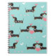 Dachshund dogs in love and hearts seamless pattern on a blue background. Valentines day vintage illustration