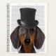 Dachshund, Formal Hound and Hat by FabFunky. Features a dapper dachshund wearing a fun top hat and monocle. | 191404D