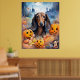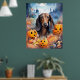 Dachshund Halloween With Pumpkins Scary Poster