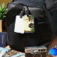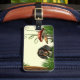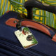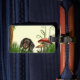 Black and tan long haired dachshund sits among grass and mushrooms dog lovers luggage tag