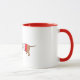 adorable Dachshund de Noël avec HO HO HO mignon dehors. Il porte un mignon petit casquette à pois rouge et blanc et un pull pour se réchauffer.