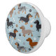 Dachshund Paws and Bones Pattern Blue Ceramic Knob