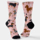 Cute dachshunds in many different colours and coat patterns with paws and bones pattern.