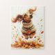 Dachshund playing in the fall leaves jigsaw puzzle