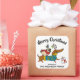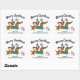A cute and colourful holiday sticker featuring a dachshund, a pug dog, a bird and a snowman.