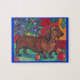 This artwork of a dachshund is an acrylic painting by Lori DeLeonardis-Aman. It makes a beautiful puzzle for dog lovers of all ages.