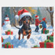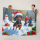 Dachshund Running in Snow with Christmas Hat Fleece Blanket