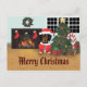 Cute Christmas scene. Black and tan dachshund dressed as Santa. A pile of presents and a giant candy cane, next to a beautifully decorated Christmas tree. A warm inviting fireplace casting a glow upon the room. This beautiful Christmas card is blank on the inside so you can personalize it.
